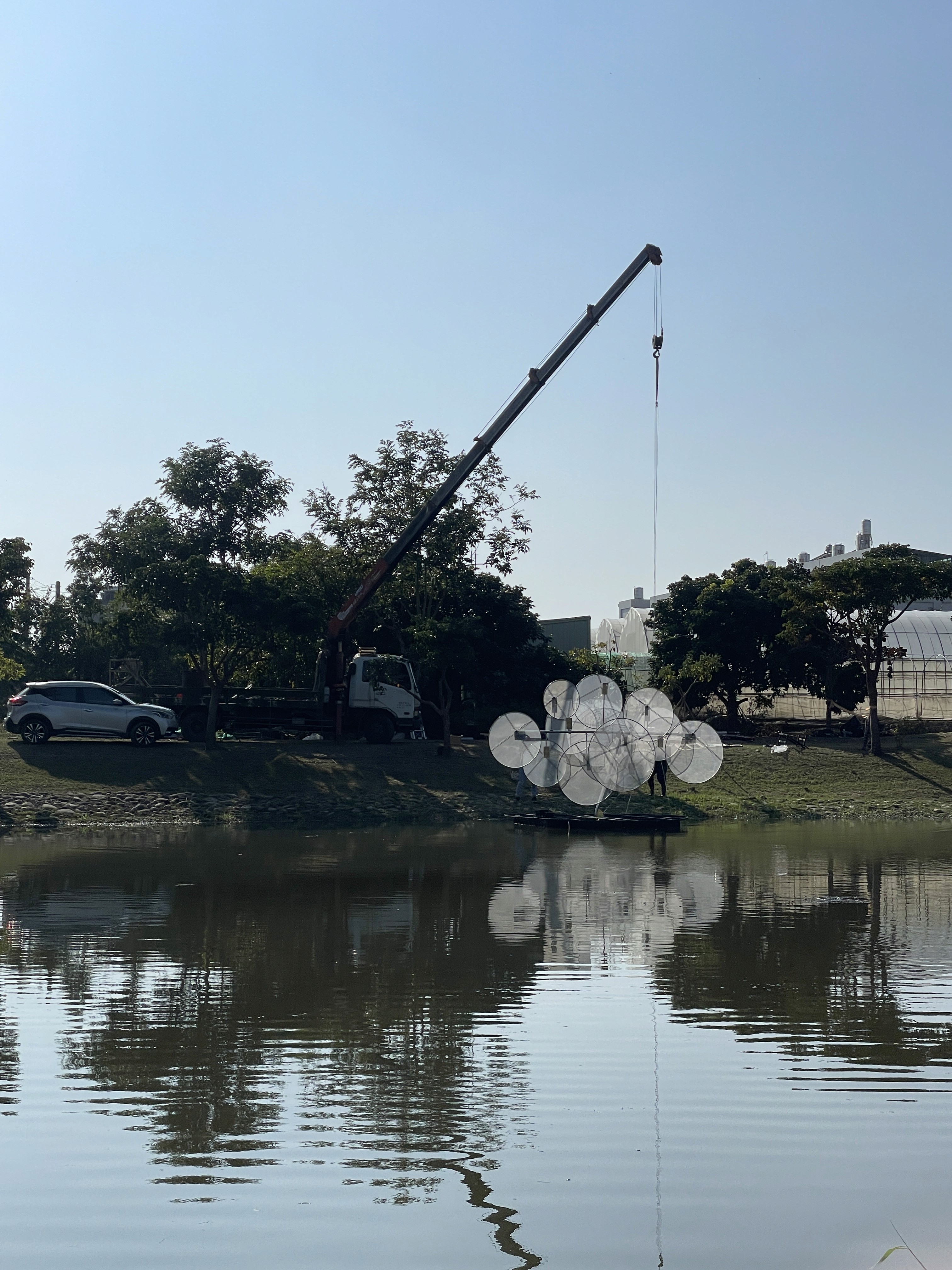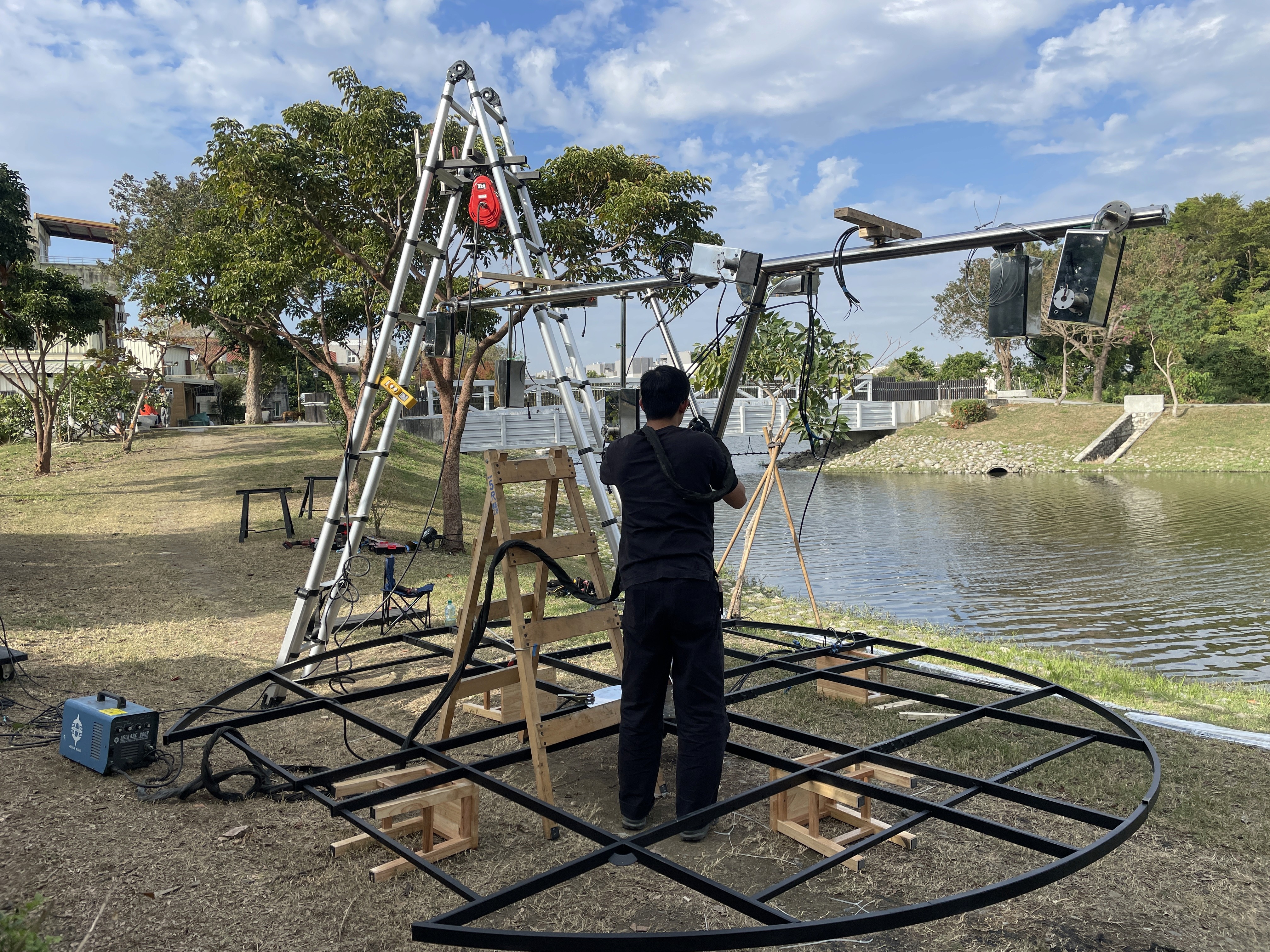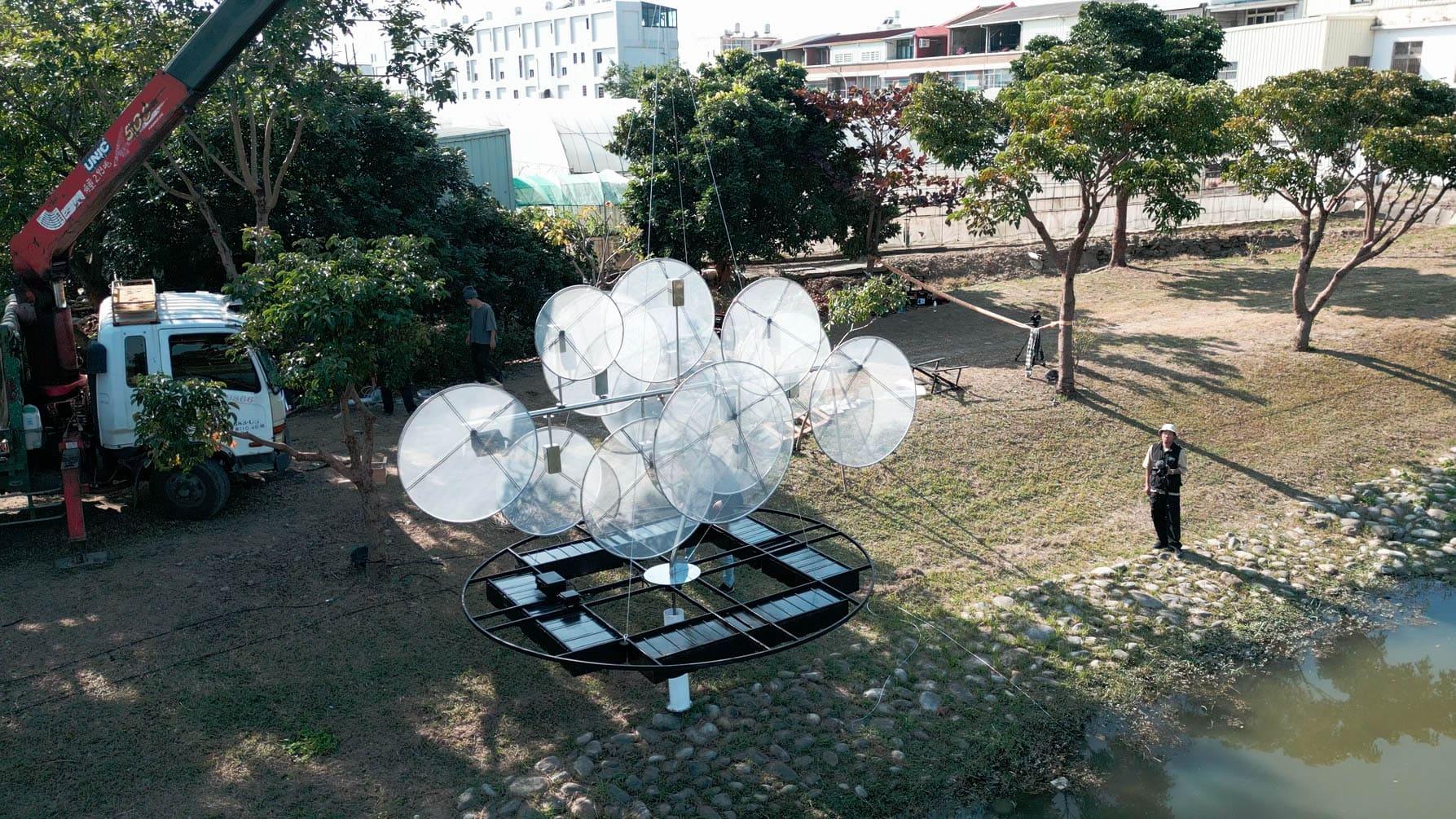 一件以動態系統與光影干涉為核心的裝置作品。作品透過多組圓形結構的低頻運動與相位差設定,使各單元在同一空間中形成彼此獨立卻相互干涉的動態場域。當光源沿著圓環邊界流動,結構之間的重疊、錯位與反射產生持續變化的視覺殘留。這些變化並不指向敘事,而是在參數控制下展開,使整體狀態介於靜止與行為之間。作品關注的是:當非同步運動與微小頻率偏移在空間中共存時,人類是否會主動賦予其意圖與情緒?在缺乏語言與聲音的條件下,動態系統是否能被感知為正在「交流」?所謂「呢喃」,並非來自聲音,而是觀者在面對低強度動態干涉時所產生的擬人化解讀。作品藉由最小限度的運動與光影變化,測試感知如何在無語言條件下生成情緒與關係。